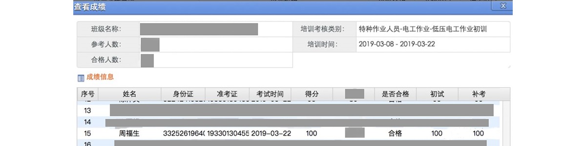電工作業(yè)(低壓)練習(xí)成績與高處作業(yè)(高處安裝、維護、拆除)練習(xí)成績