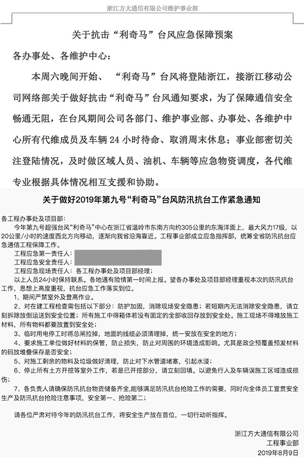 方大通信人時刻準(zhǔn)備,正面應(yīng)對今年首個超強(qiáng)臺風(fēng)“利奇馬”