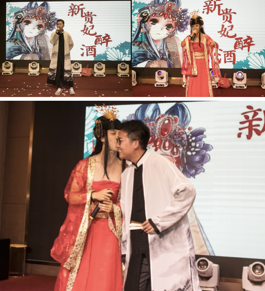 由大客戶部杜超、吳征宇帶來(lái)的《新貴妃醉酒》將晚會(huì)的氣氛推向高潮,優(yōu)美的歌聲,夸張的表演,真實(shí)有趣的靈魂萬(wàn)里挑一