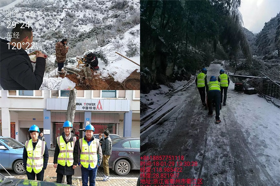2018年1月29日上午11點(diǎn)。陳總已到達(dá)衢州鐵塔辦事處?。●R不停蹄,只為見(jiàn)見(jiàn)還在奮斗的方大通信人。衢江班子成員,有一名女將樊玉紅,還有男人董文國(guó),是他們帶領(lǐng)著團(tuán)體守衛(wèi)著衢州。還沒(méi)來(lái)得及坐下來(lái)好好吃飯,陳總一行人已經(jīng)往山上趕去,下雪天路面結(jié)著冰,對(duì)山路的不熟悉,還有肆虐的毛竹阻擋了我們的去路,但這些都不是讓我們停下腳步的緣由!沒(méi)有交通工具的協(xié)助,我們就靠自己有力的雙腿。