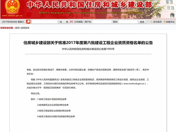 據(jù)中華人民共和國住房和城鄉(xiāng)建設(shè)部的層層嚴格審查審批,在2017年度第六批建設(shè)工程企業(yè)資質(zhì)資格名單的公告中,方大成功獲取“通信工程施工總承包壹級”資質(zhì),可喜可賀。